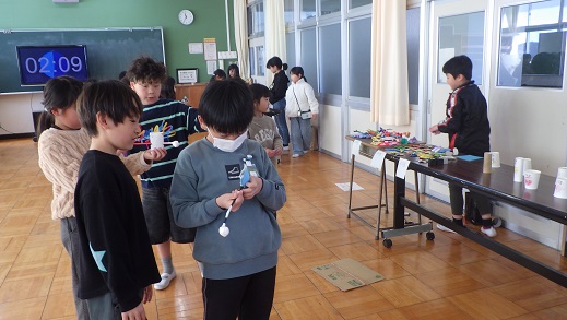 3年生が、「理科のふしぎランド」を開催してくれました。理科の学習をまとめたおもちゃを作ってくれました。「これは、風の力を使うんだよ」「これは、ゴムの力だよ」「電気の力で、光るんだよ」と、わかりやすく解説もしてくれました。来年の理科がとても楽しみになりました。