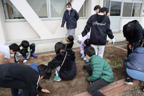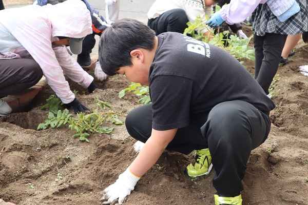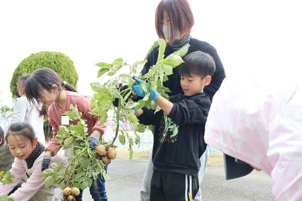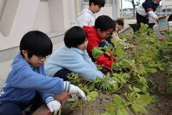 2学期の初め頃に植えたじゃがいもを収穫しました。立派な葉と茎の下からは、大小さまざまなじゃがいもが…!みんなで楽しく掘りました。たくさん収穫することができました。大きなじゃがいもは再来週の調理実習で使います。小さめのじゃがいもは、家に持ち帰りました。お家で食べてみて、感想を教えてくださいね。
