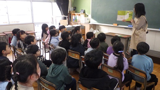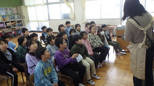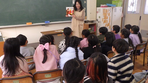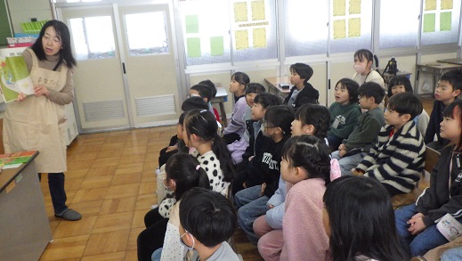 読み聞かせ「あおむし」さんに来ていただきました。毎回、季節の本を読んでくださいます。今回も、季節にちなんだ読み聞かせで、とても興味がわきました。国語では、ロボットの本を学習しています。「本を読むと、知らないことを知れて楽しい。」「図書室に借りに行きたい。」さまざまな種類の本に親しんでいきたいです。