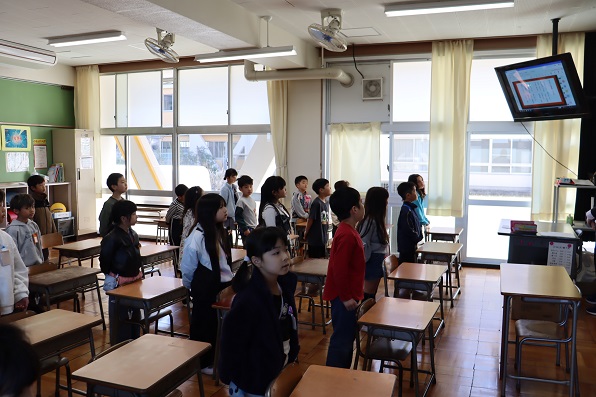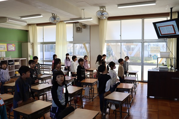 令和7年度の修了式を行いました。修了式では、校長先生より5年生から1年生の学年代表児童に修了証が渡されました。緊張しながらも力強い返事をして、堂々とした態度で受け取ることができ、成長が感じられました。 その後、各学級で担任の先生から修了証が手渡され、先生から話を聞きました。 本日をもって令和7年度の教育活動を終えることができました。ひとえに保護者の皆様、地域の皆様のおかげと厚く御礼申し上げます。 今後も本校の学校教育に、ご理解とご協力を賜りますようお願いいたします。