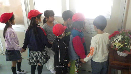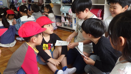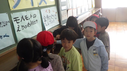 1年生と2年生で、学校探検と運動場遊びをしました。「最初はドキドキしたけど、すぐに仲良しになれた。」「友達ができて、うれしい。」「1年生に、大丈夫?ゆっくりでいいよって声をかけた。」「はんの友達の名前を覚えた自分ナイス。」「チームワークで班のみんなと迷わず探検できた。」とたくさんの強みパワーを使い、探検と遊具遊びをすることができました。休み時間、遊具で遊ぶことが楽しみです。