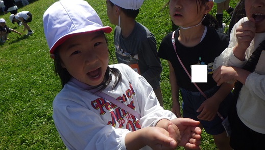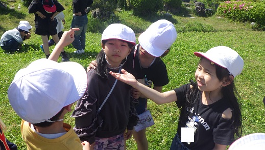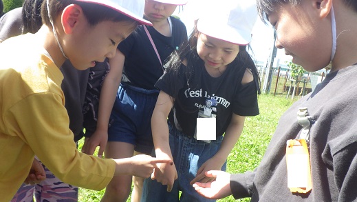 校内の庭で春見つけをしました。「チョウが飛んでいるはずだから、ここに行こう」「ダンゴムシは、ここらへんにいるはず」「テントウムシは、葉の裏に…」と、虫のすみかをよく知っていました。勇敢さパワーを使って、「ホントは、虫苦手だけどやってみる~!!」との声も聞くことができました。植物や虫に興味を持ってくれてうれしいです。