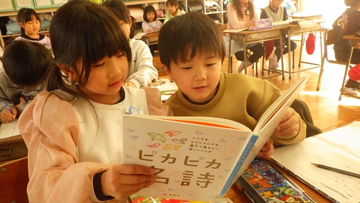 国語で「詩の楽しみ方を見つけよう」を学習しています。図書室には、たくさん詩の本があります。読んで楽しもうを、めあてに進めています。「おもしろいね~」「あるある~わかる~同じ気持ち」「へ~そう思ったんだね」「いいリズム」と楽しく詩を読んでいます。この中から、未来の詩人が生まれるかもしれません。
